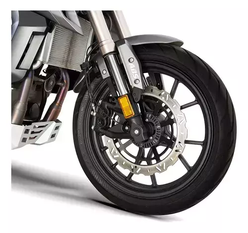 Cuenta con frenos ABS delantero y trasero, horquilla invertida, cámara delantera con conectividad Bluetooth. Posee también comandos retroiluminados, luces full led, cubrecarter y pantalla LCD.